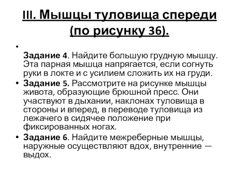 Слайд 8III. Мышцы туловища спереди (по рисунку 36).