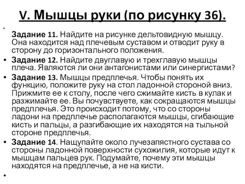 Слайд 10V. Мышцы руки (по рисунку 36).