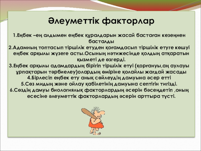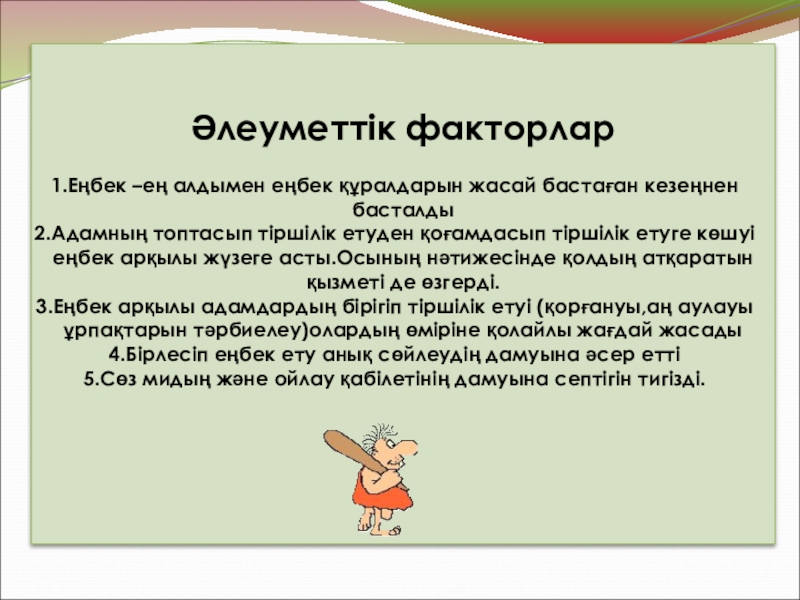 Сөздің дамуы биологиялық факторлардың әсерін бәсеңдетіп ,оның есесіне әлеуметтік факторлардың әсерін арттыра түсті.