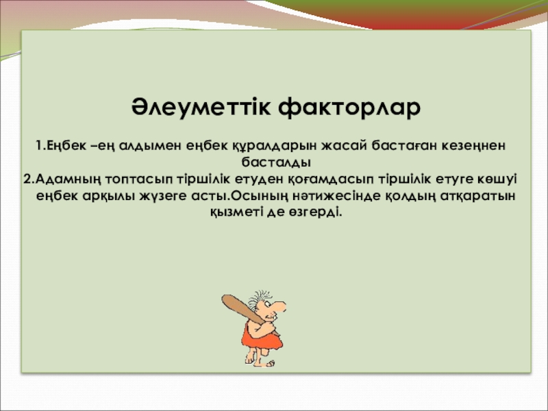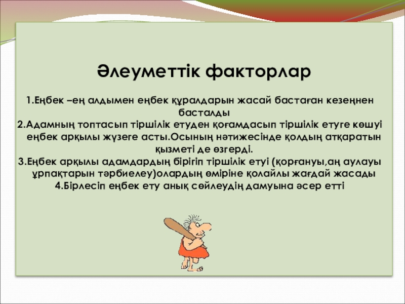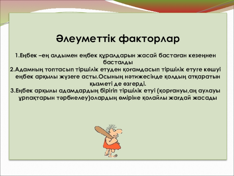 Еңбек арқылы адамдардың бірігіп тіршілік етуі (қорғануы,аң аулауы ұрпақтарын тәрбиелеу)олардың өміріне қолайлы жағдай жасады