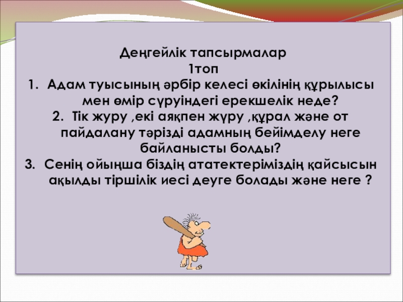 Сенің ойыңша біздің ататектеріміздің қайсысын ақылды тіршілік иесі деуге болады және неге ?