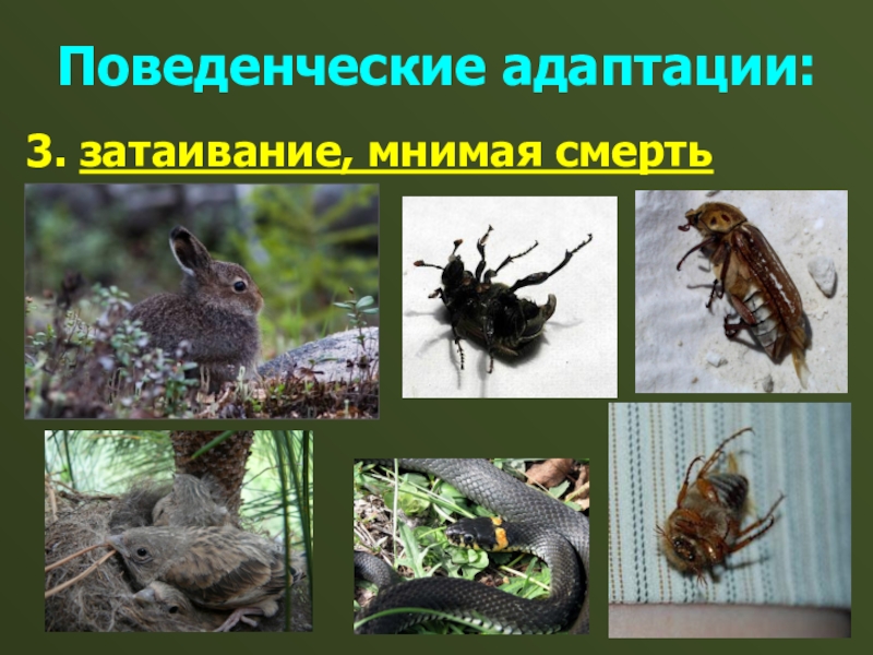 Поведенческие адаптации:3. затаивание, мнимая смерть