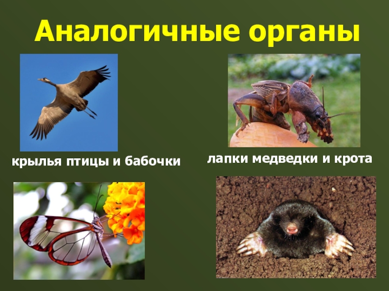 Аналогичные органыкрылья птицы и бабочкилапки медведки и крота