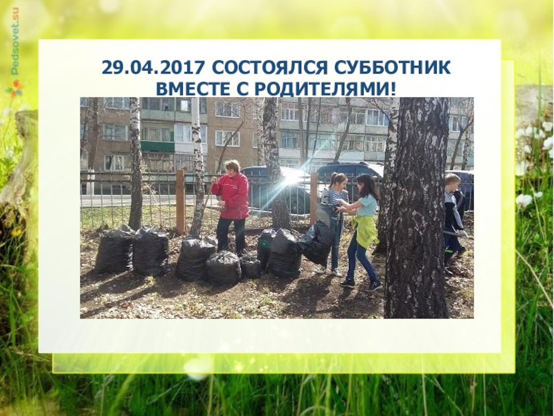 Слайд 629.04.2017 СОСТОЯЛСЯ СУББОТНИК ВМЕСТЕ С РОДИТЕЛЯМИ!