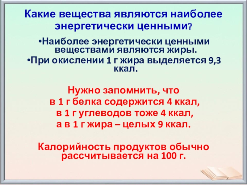 Энергетическая ценность продуктов определяется калориями ИЛИ