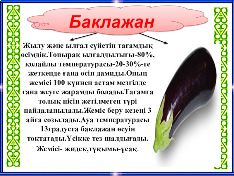 3. Баклажан - .......... және ......... сүйетін тағамдық өсімдік.