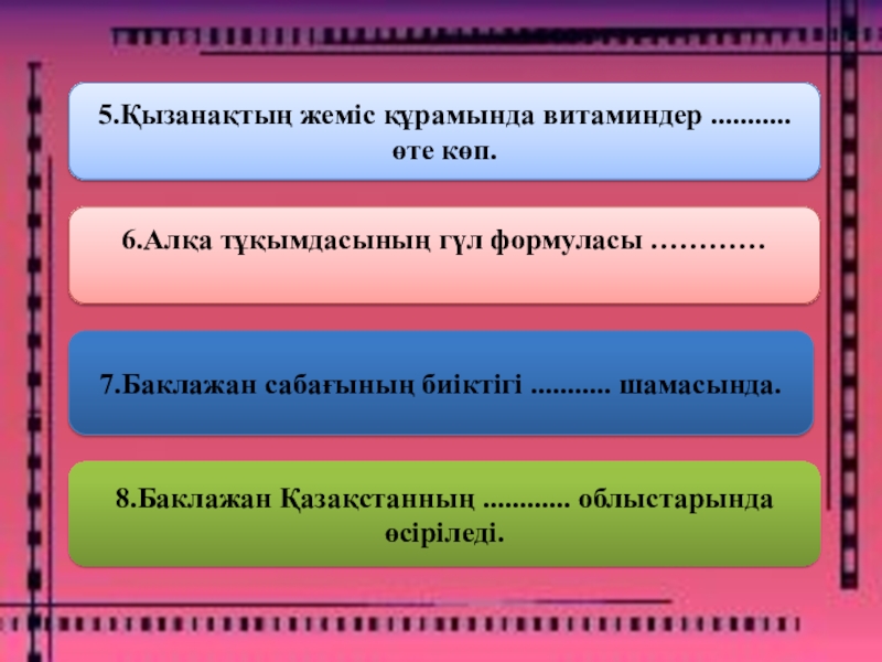 8.Баклажан Қазақстанның ............ облыстарында өсіріледі.