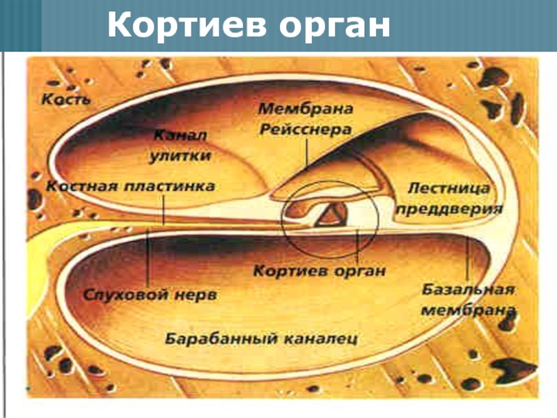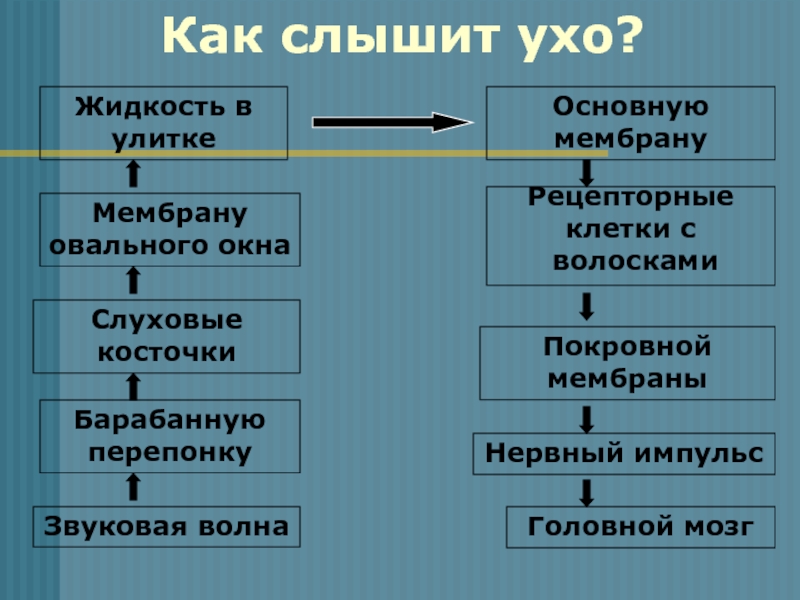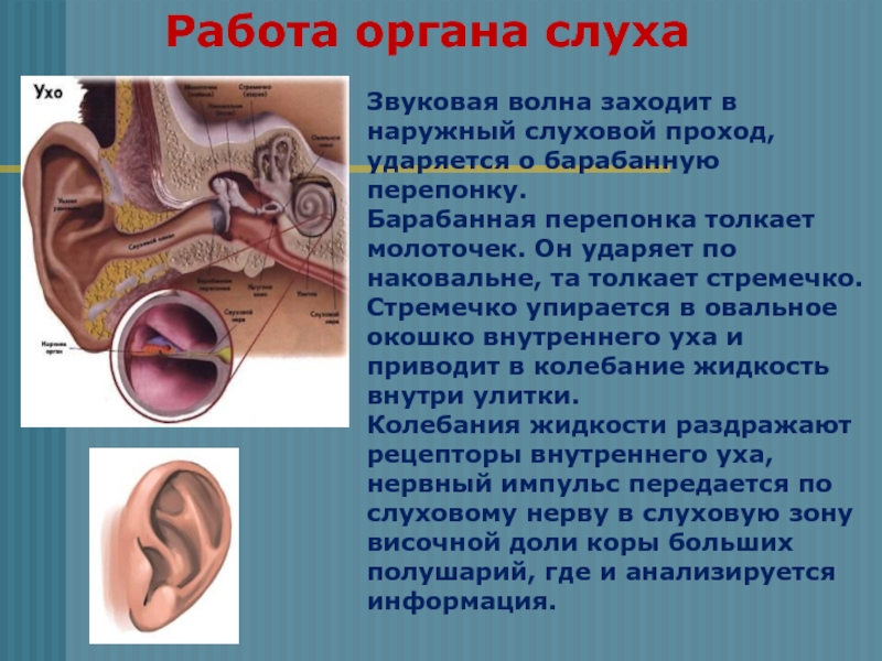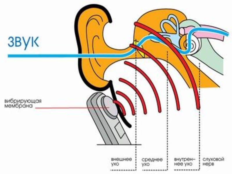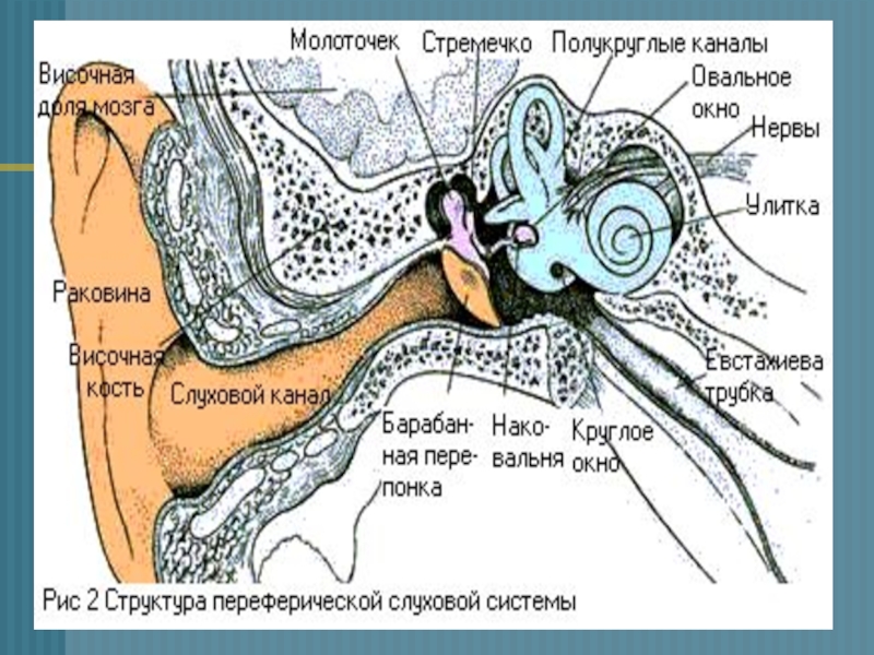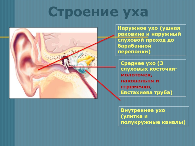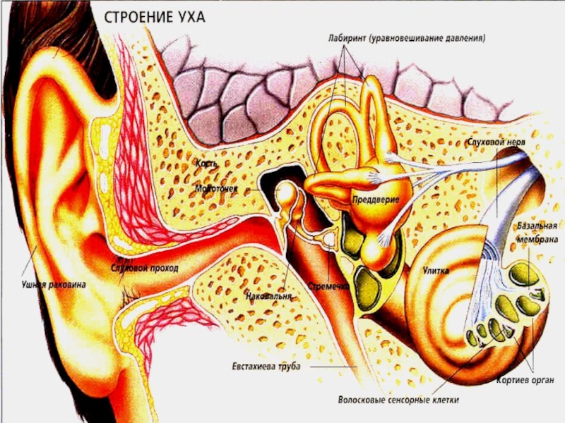 Среднее ухо (3 слуховых косточки- молоточек, наковальня и стремечко,