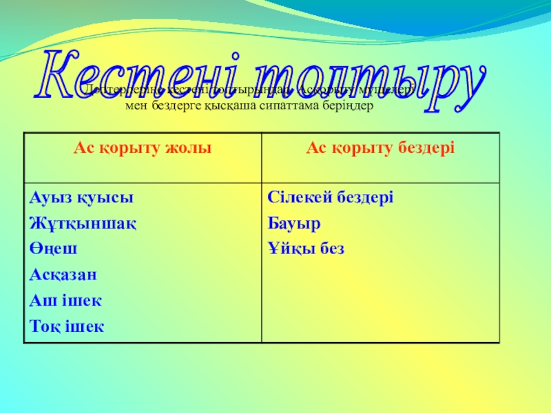 Қызметі: тағамды механикалық химиялық өзгеріске ұшыратады.