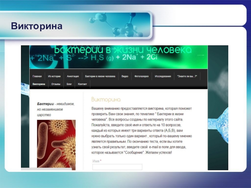 на основе изученного материала, создать сайт, который обобщит все полученные результаты, и поможет учащимся в дальнейшем, в получении дополнительной информации о бактериях.