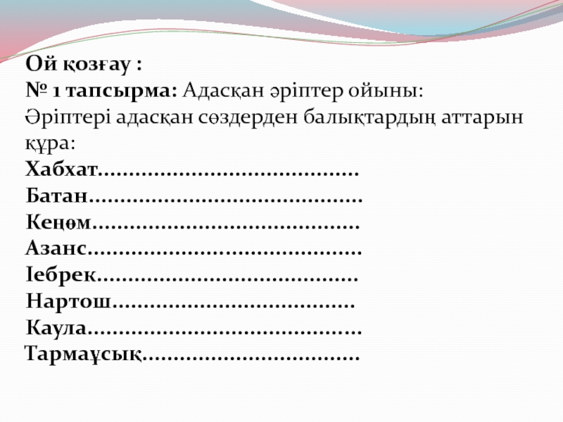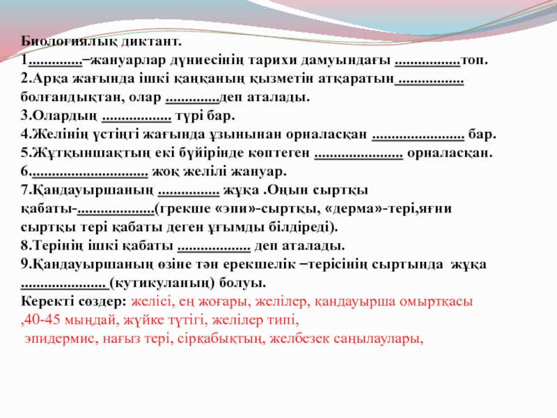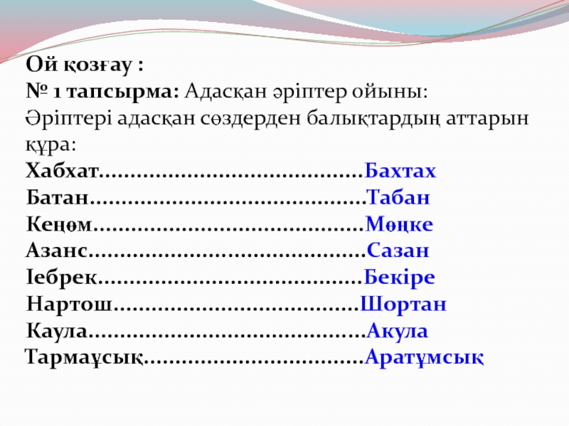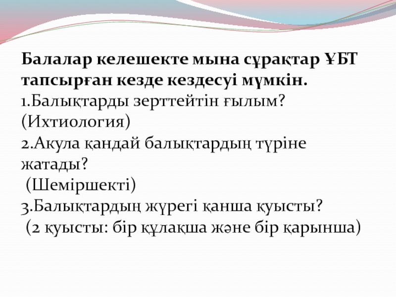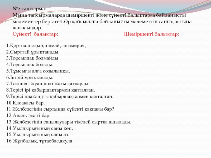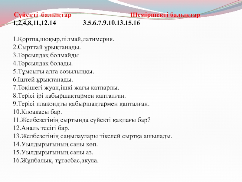 1.Қортпа,шоқыр,пілмай,латимерия,