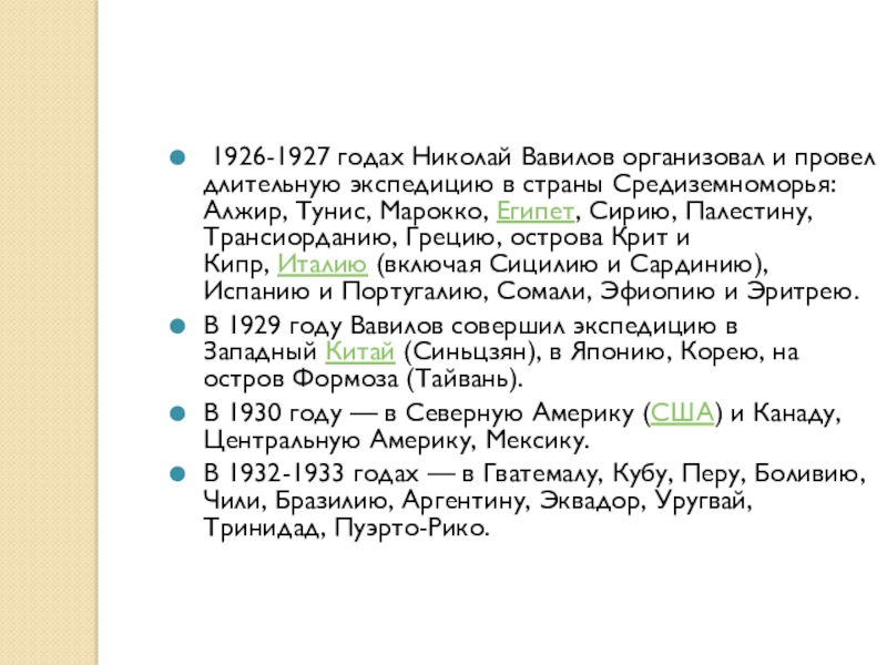 Слайд 10 1926-1927 годах Николай Вавилов организовал и провел длительную экспедицию в страны