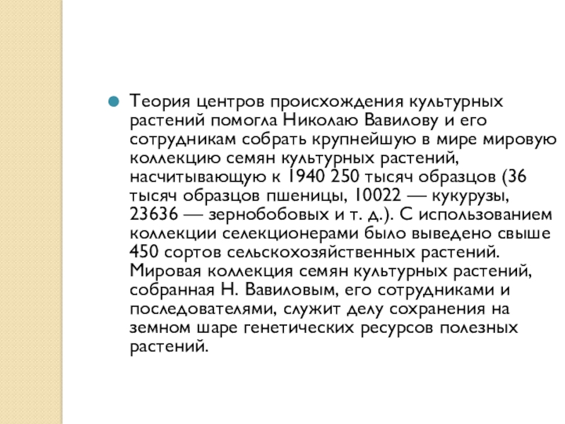 Слайд 14Теория центров происхождения культурных растений помогла Николаю Вавилову и его сотрудникам