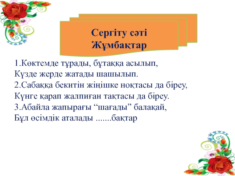 Тірек сызбалар, суреттер, интербелсенді тақта, флипчарт, кестелер