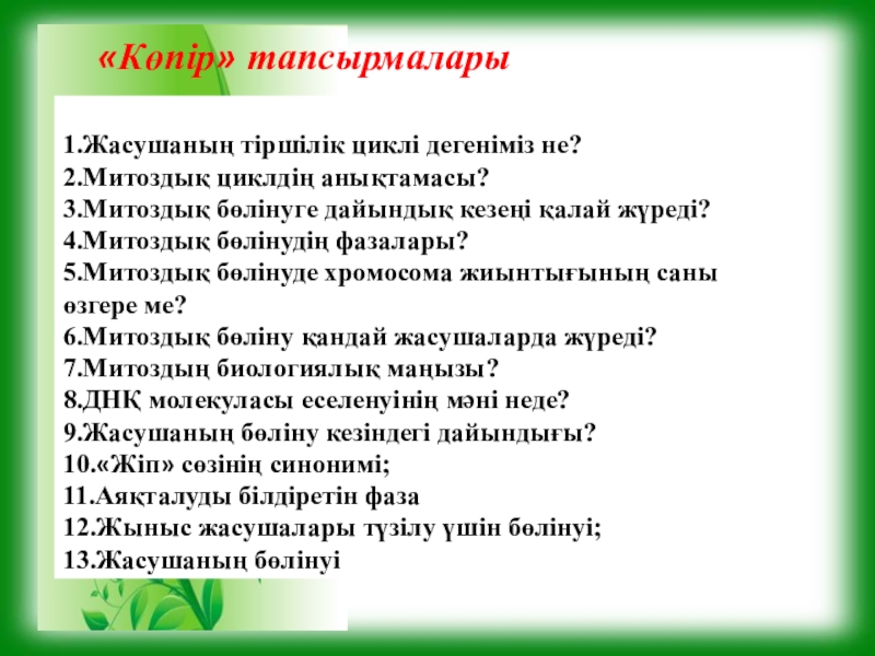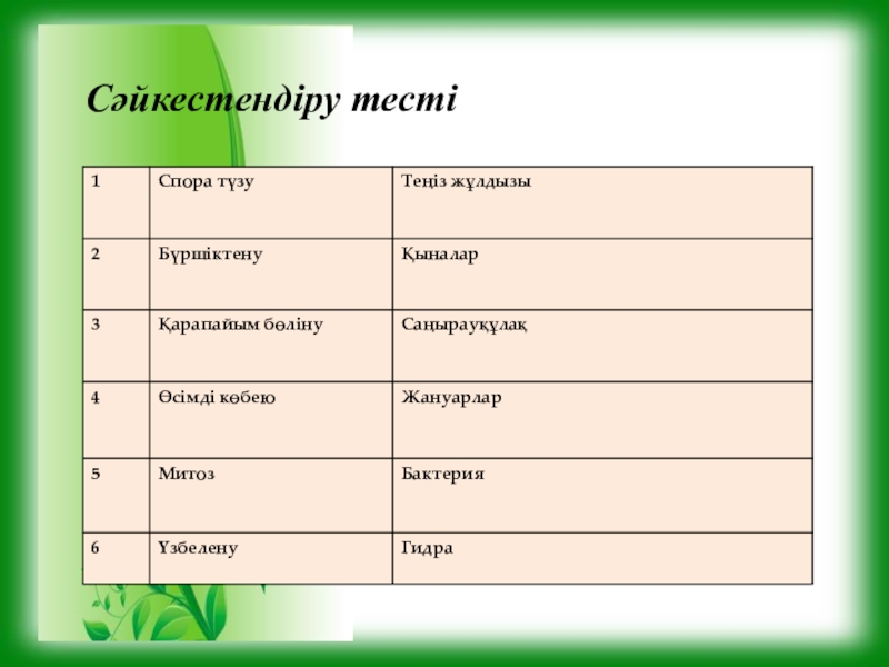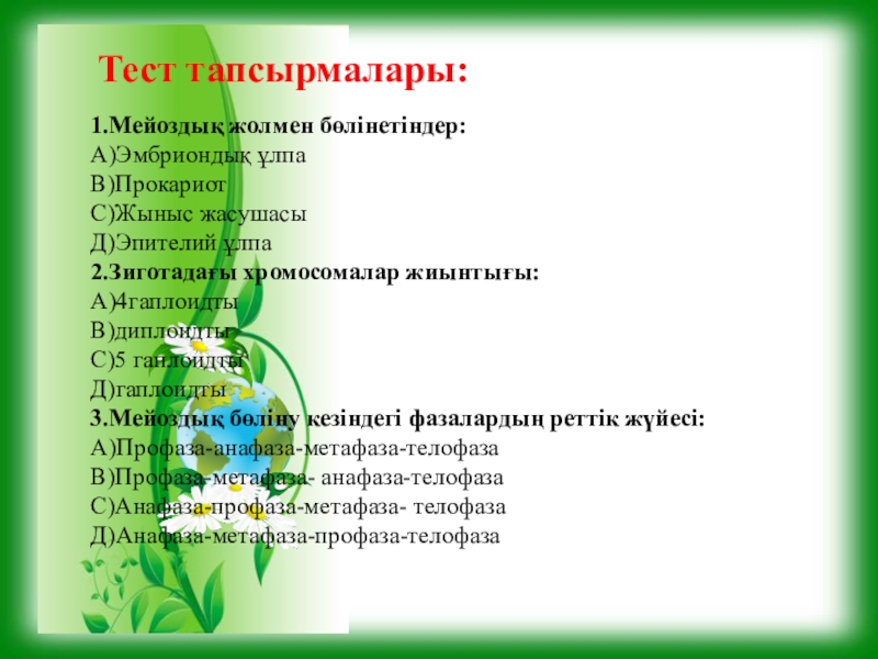 Тест тапсырмалары: