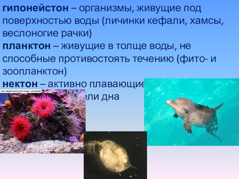 нейстон – организмы, обитающие у поверхностной пленки воды (простейшие, клопы-водомерки)
