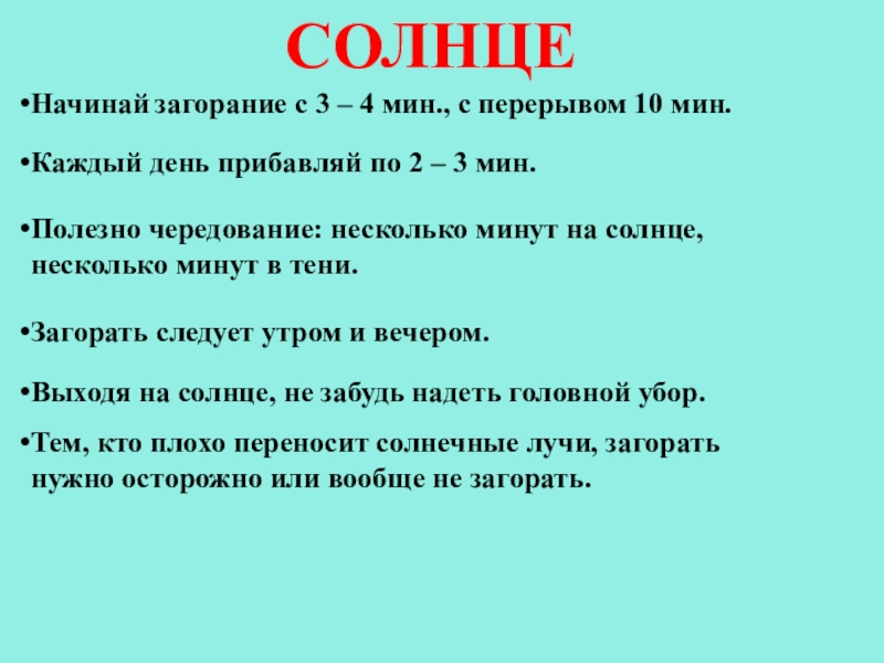 Выходя на солнце, не забудь надеть головной убор.