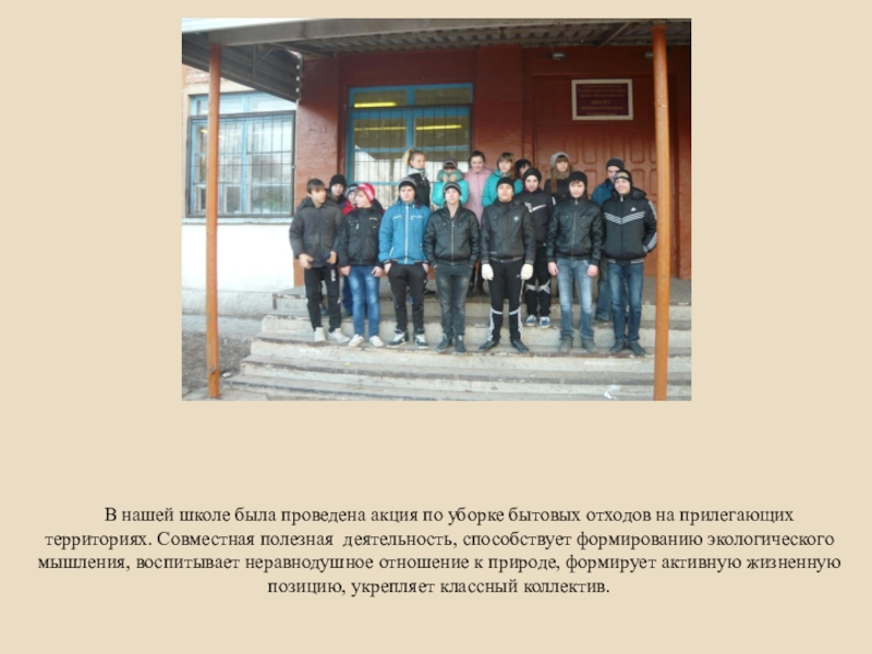 Слайд 2 В нашей школе была проведена акция по уборке бытовых