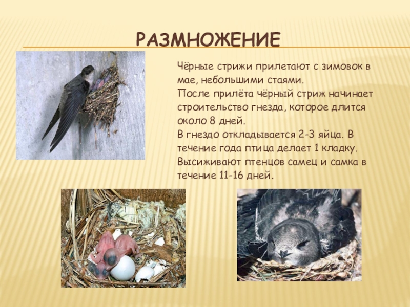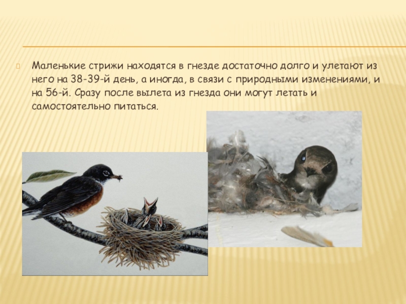 Слайд 9Маленькие стрижи находятся в гнезде достаточно долго и улетают из него