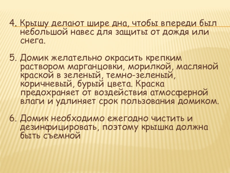Слайд 144. Крышу делают шире дна, чтобы впереди был