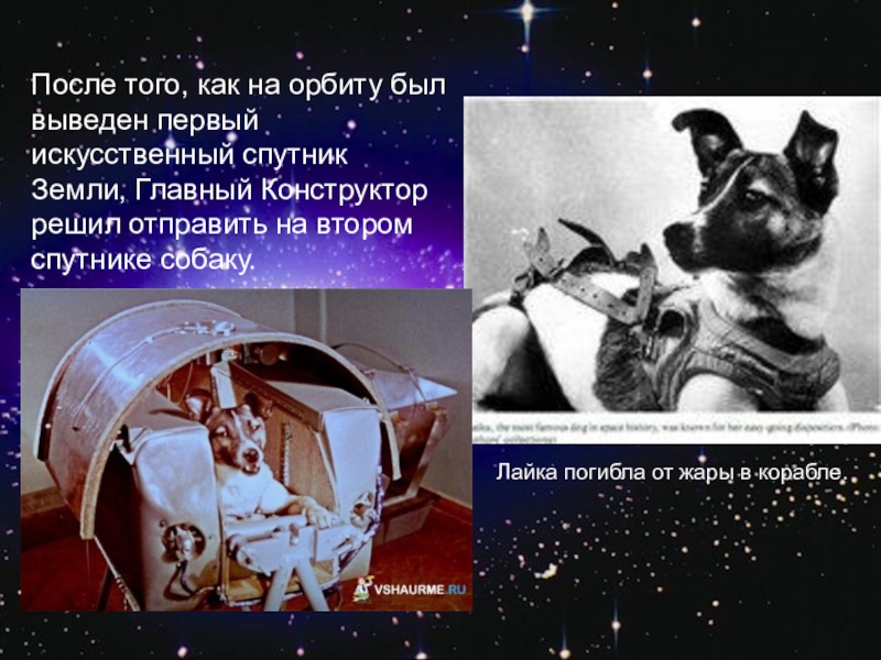 Лайка погибла от жары в корабле.