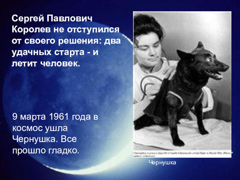 Сергей Павлович Королев не отступился от своего решения: два удачных старта - и летит человек.