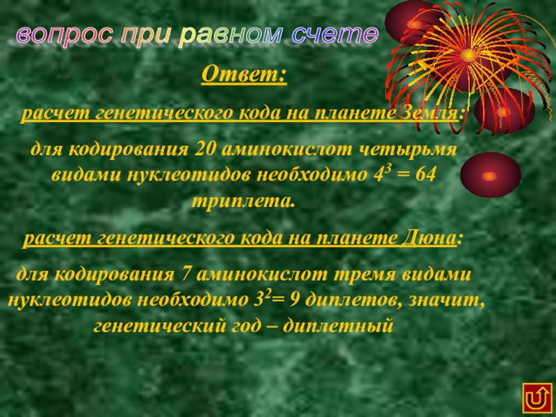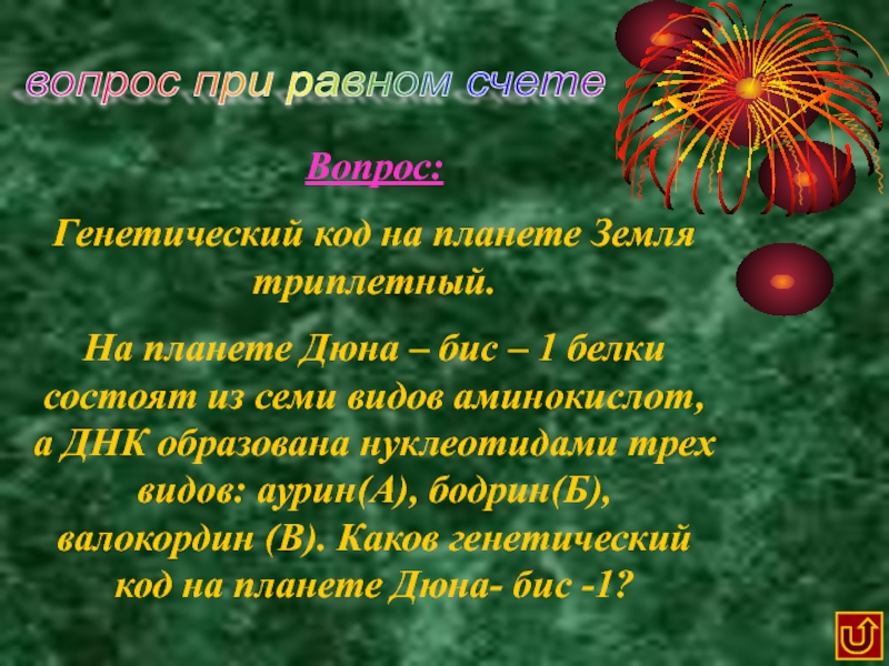 На планете Дюна – бис – 1 белки состоят из семи видов аминокислот, а ДНК образована нуклеотидами трех видов: аурин(А), бодрин(Б), валокордин (В). Каков генетический код на планете Дюна- бис -1?