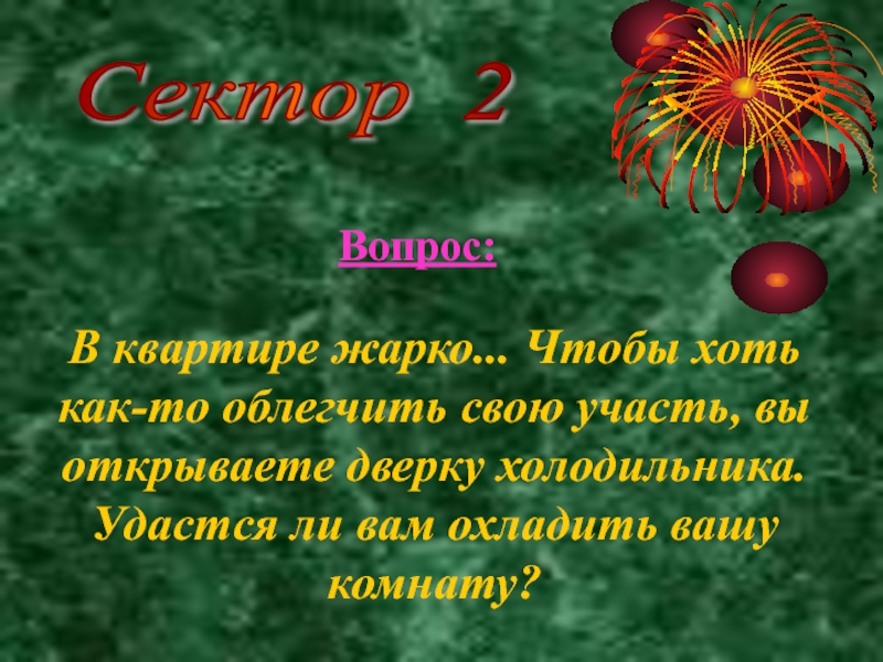 свою участь, вы открываете дверку холодильника. Удастся ли вам охладить вашу комнату?