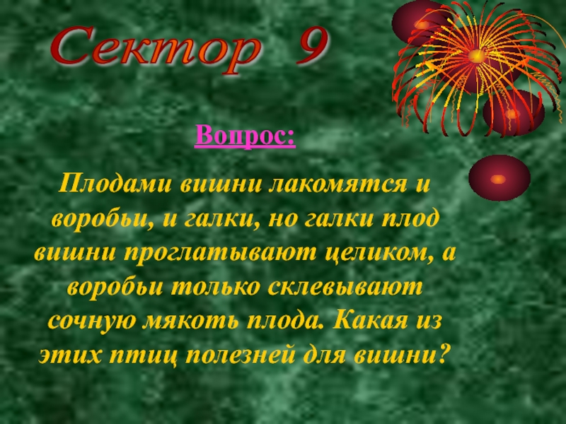 галки плод вишни проглатывают целиком, а воробьи только склевывают сочную мякоть плода. Какая из этих птиц полезней для вишни?