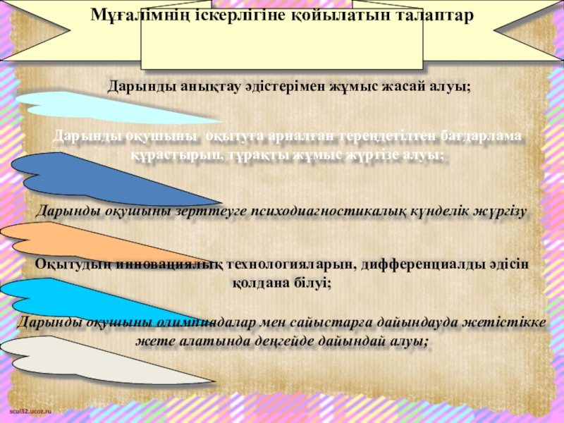 Дарынды оқушыны олимпиадалар мен сайыстарға дайындауда жетістікке жете алатында деңгейде дайындай алуы;