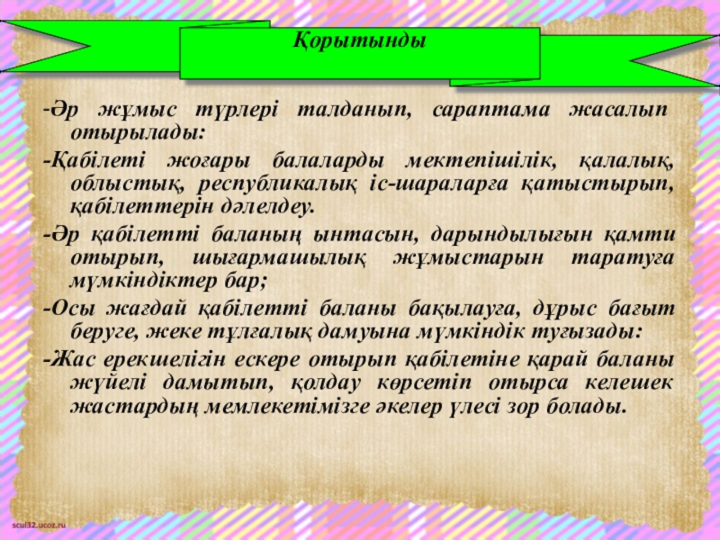 Жеке бір іс-әрекет түрі мен белгілі бір ғылым түріне қабілеттілігімен көзге түскен оқушылар