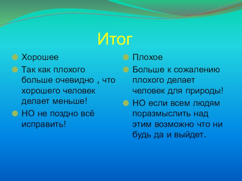 Больше к сожалению плохого делает человек для природы!