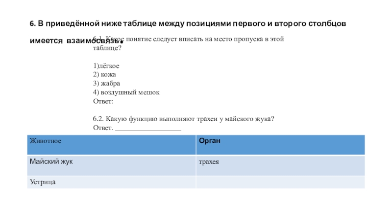 6.2. Какую функцию выполняют трахеи у майского жука?
