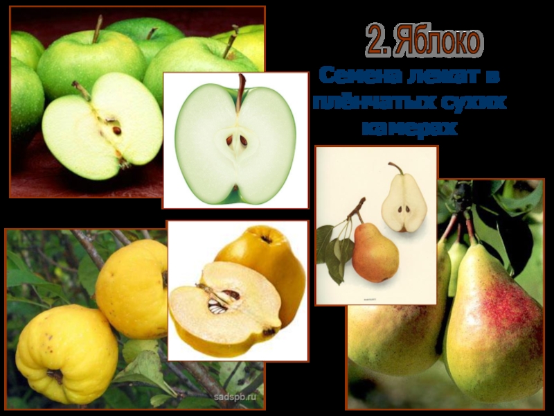2. ЯблокоСемена лежат в плёнчатых сухих камерах