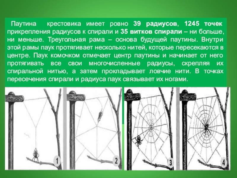 Слайд 20 Паутина крестовика имеет ровно 39 радиусов, 1245 точек прикрепления радиусов
