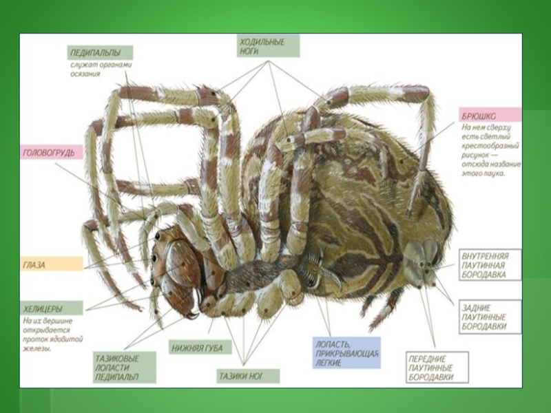Слайд 11 В природе пауки-крестовики считаются особо полезными