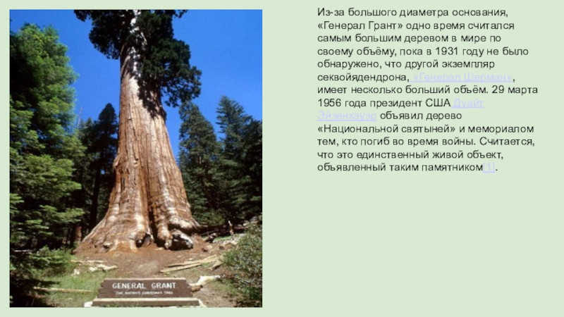 Слайд 8Генерал Грант — экземпляр секвойядендрона гигантского (Sequoiadendron giganteum), являющийся вторым по