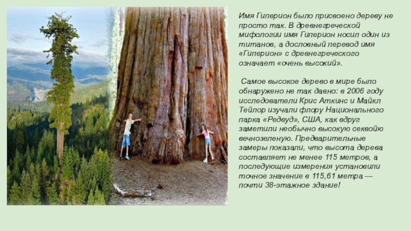 Слайд 10Имя Гиперион было присвоено дереву не просто так. В древнегреческой мифологии