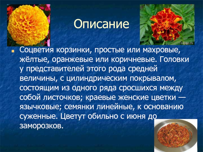 Ба́рхатцы прямостоя́чие, или Бархатцы африка́нские