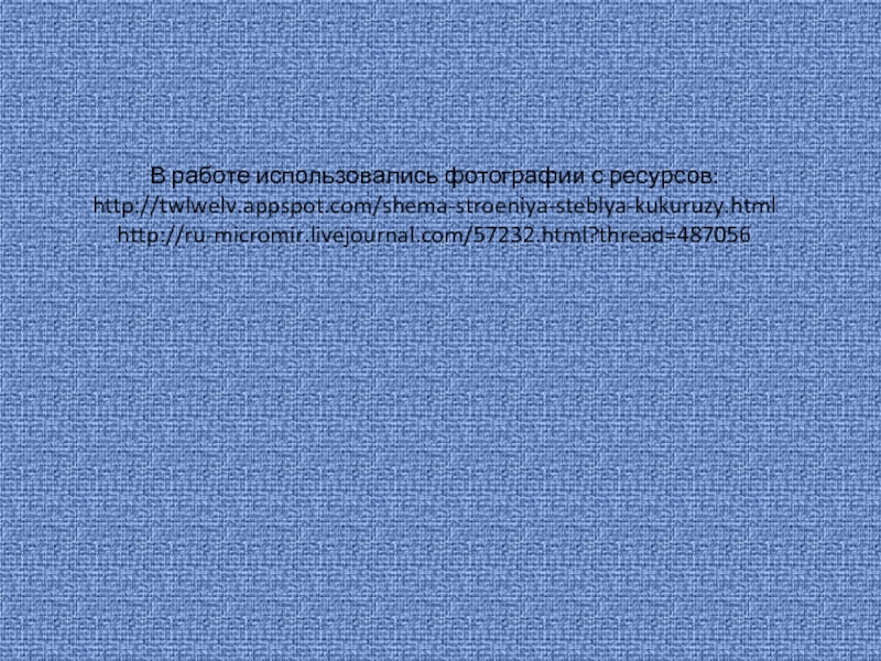 Слайд 8В работе использовались фотографии с ресурсов: http://twlwelv.appspot.com/shema-stroeniya-steblya-kukuruzy.html http://ru-micromir.livejournal.com/57232.html?thread=487056