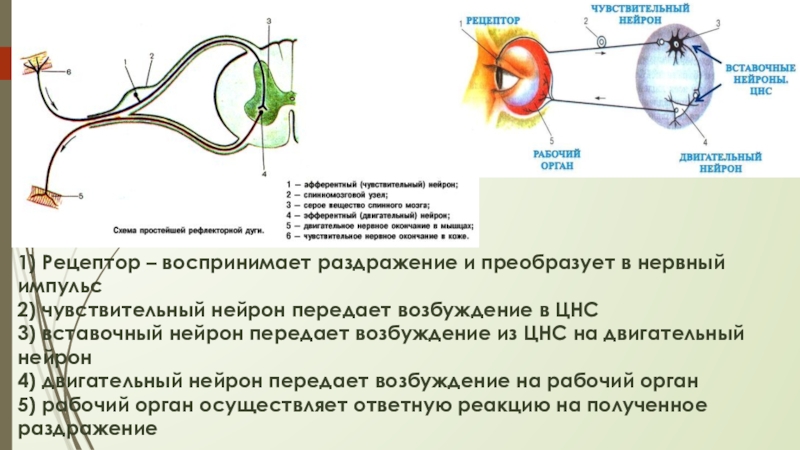 Слайд 341) Рецептор – воспринимает раздражение и преобразует в нервный импульс