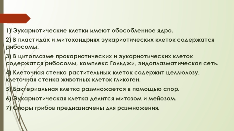 3) В цитоплазме прокариотических и эукариотических клеток содержатся рибосомы, комплекс Гольджи, эндоплазматическая сеть.