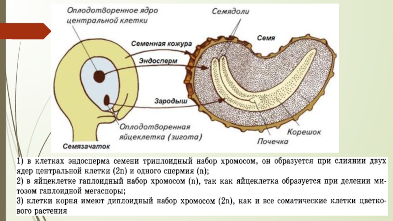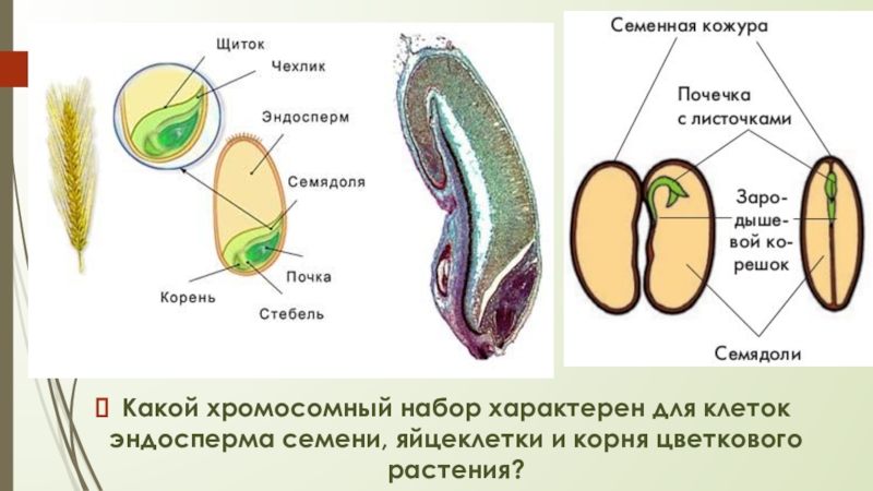 Слайд 19Какой хромосомный набор характерен для клеток эндосперма семени, яйцеклетки и корня