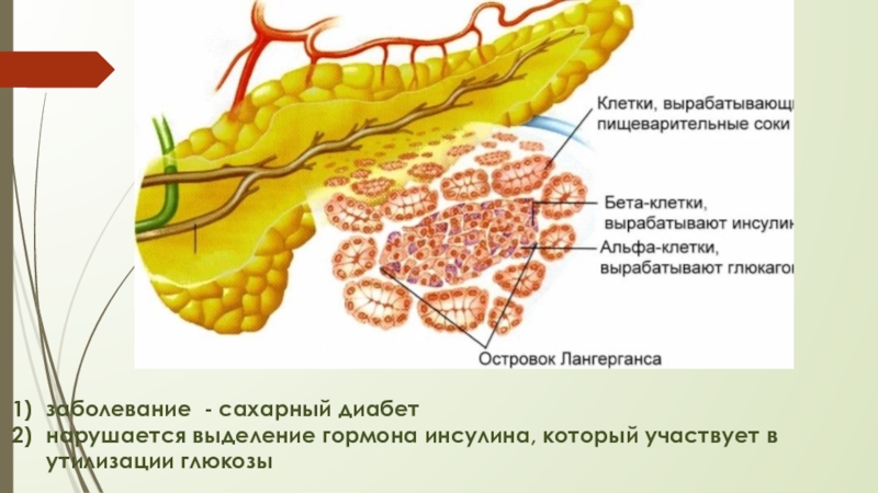 нарушается выделение гормона инсулина, который участвует в утилизации