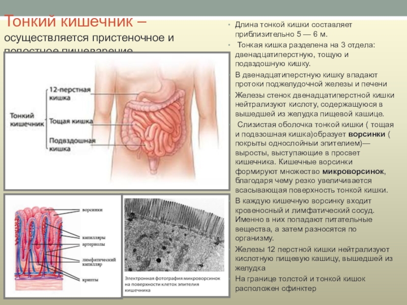 Слайд 18Тонкий кишечник – осуществляется пристеночное и полостное пищеварение