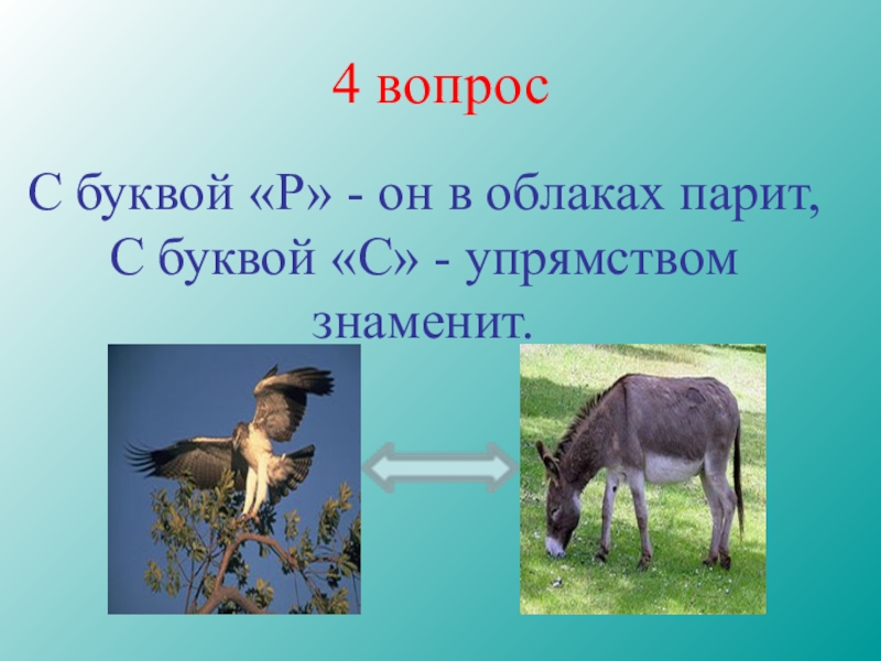4 вопросС буквой «Р» - он в облаках парит,С буквой «С» - упрямством знаменит.