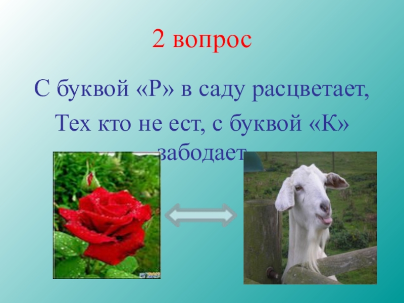 2 вопросС буквой «Р» в саду расцветает,Тех кто не ест, с буквой «К» забодает