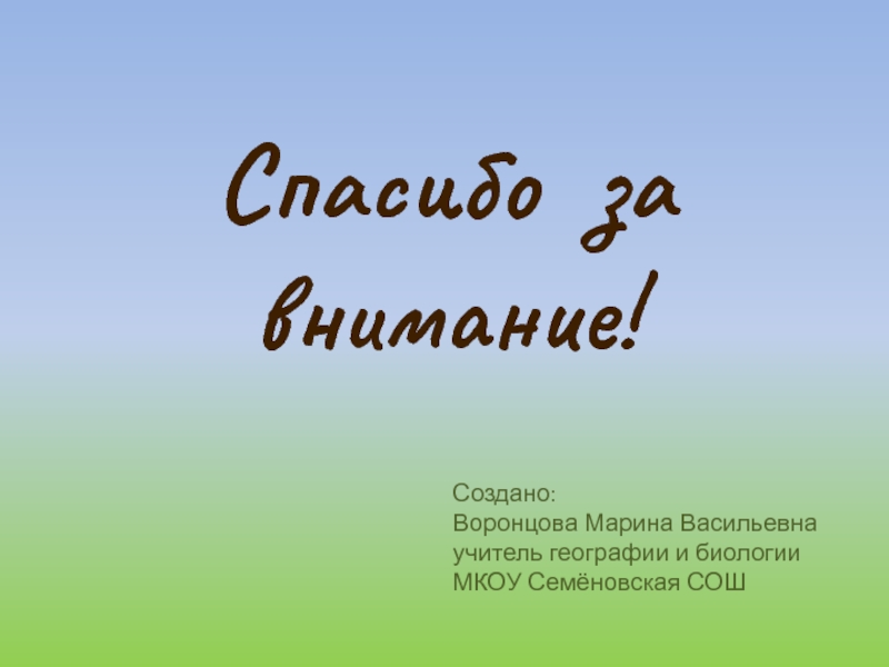 Воронцова Марина Васильевна учитель географии и биологии