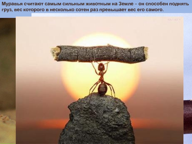 Слайд 21Муравья считают самым сильным животным на Земле – он способен поднять