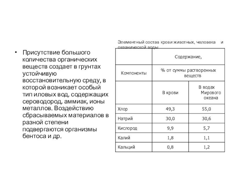 Элементный состав крови животных, человека и океанической воды